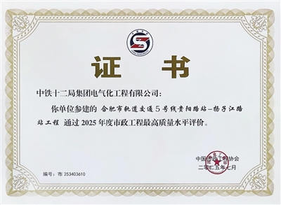 近日,合肥市轨道交通5号线贵阳路站至扬子江路站工程通过中国市政工程协会评审,获市政工程最高质量水平评价。该段工程由中铁十二局集团电气化工程有限公司参建,涵盖两站及区间施工。
