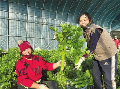 棚外寒风阵阵,棚内却暖意融融,基地十几个标准化大棚内,西芹、白芹、红芹等品种长势喜人,丰收的场景为冬日津城的“菜篮子”增添了底气。