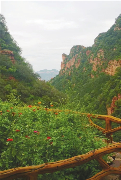 三山溪谷离紫金山很近,七八里路。小雨淅沥不止,空气格外清新,几缕白云在山腰缓缓飘移,令太行山平添了一丝灵动的仙气。
