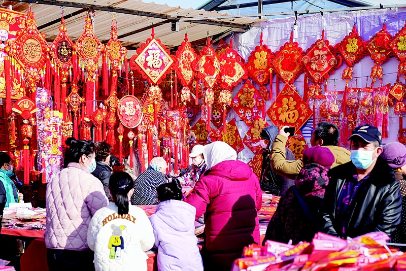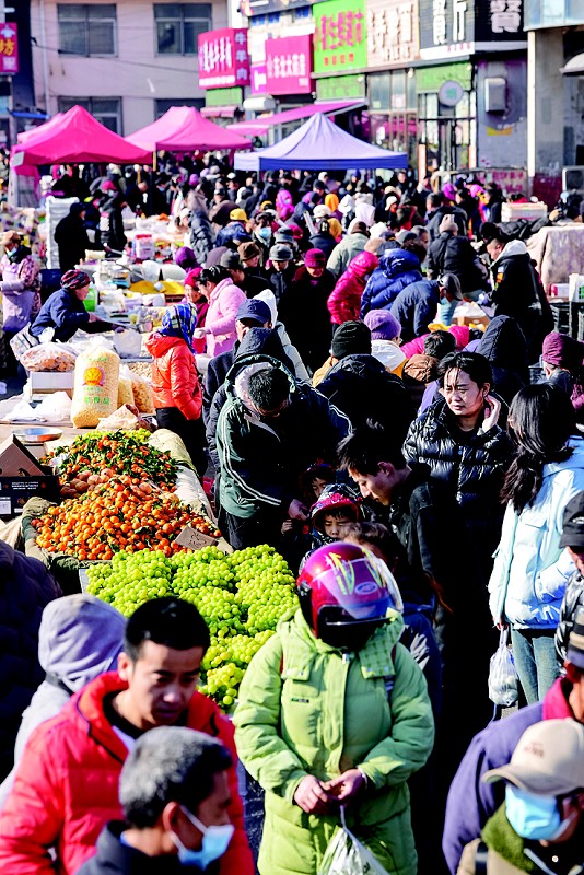 快过年了,年货大集开张了!19日,营城子年货大集上,来采购年货的顾客络绎不绝,大集上一片繁忙景象。各种款式的对联福字摆满了摊位,还有琳琅满目的节庆饰品也挂在显眼的位置,红红火火的,看着就很喜庆。活禽摊位前也十分热闹,各种禽类摆了长长一排,顾客们看中了哪只鸡,拎起来仔细掂量,一定得挑中自己最满意的那一只。逛累了买点好吃的补充下能量,小吃摊位前同样热气腾腾,诱人的小吃让等待的孩子们看得直咽口水。大集上,肉类、海鲜、蔬菜、水果应有尽有,大家逛完一圈后都是收获满满,手里拎着大包小裹的年货满载而归。 半岛晨报、39度视频 摄影记者张腾飞文/图