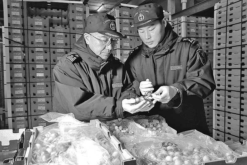 为满足国内市场对进口水果日益增长的需求,大窑湾海关成立“保鲜保供”工作专班,开辟鲜活易腐农产品通关“绿色通道”,建立“关、港、企”三方联动机制,综合实施预约通关、前置审核、快验快放等措施,确保“卸船-疏港-验放”无缝衔接,进口鲜果随到随验,最大程度保障鲜果品质。