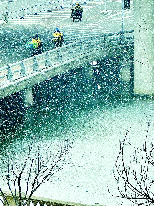 2月9日,大连天空阳光灿烂,却突然飘落雪花。鹅毛大雪纷纷扬扬落在街道上,虽然持续时间不长,但足够令人惊喜。太阳高照,为何能飘起雪花?太阳雪,顾名思义就是一边出太阳,一边下雪。太阳雪形成的主要原因是受冷空气影响形成降雪,同时高层云不足以遮住太阳,于是出现一边下雪,一边出太阳的天气自然现象。 半岛晨报、39度视频 首席摄影记者周蕾 摄影记者孙振芳文/图