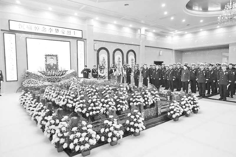 2月13日,大连市在旅顺口区殡仪馆举行追悼仪式,深切缅怀在“2·7”火灾救援中壮烈牺牲的李梦豪烈士。