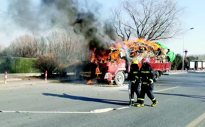 货车着火不容小觑,要养成定期检查发动机、油路、电路的习惯,如遇火灾,要立马靠边停车,离开车辆,并立刻拨打“119”,等待消防救援人员前来救助。