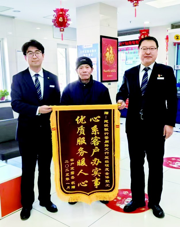 2月20日,宋女士再次来到建行大连香周路支行,脸上洋溢着笑容,手中捧着一面锦旗“心系客户办实事,优质服务暖人心”。该行工作人员接过锦旗,并与宋女士的姐夫合影留念。照片中,每个人的脸上都洋溢着笑容,仿佛冬日的寒冷已被这份温暖彻底驱散。