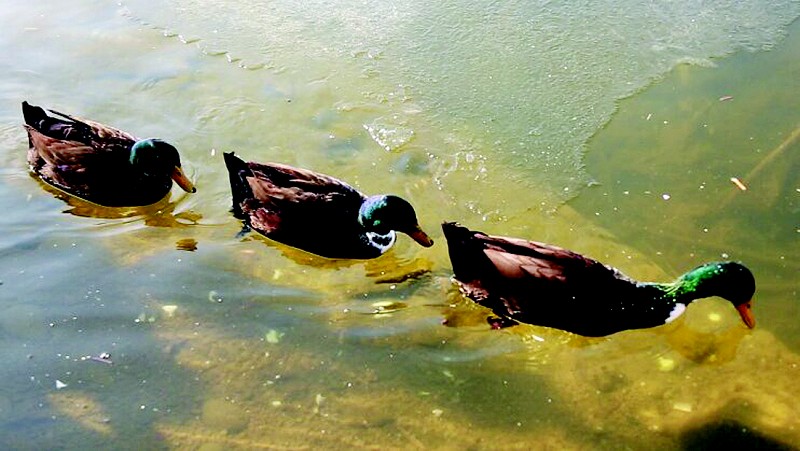 近日,滨城大连气温攀升,劳动公园荷花池内冰层悄然化开,几只鸭子在水中嬉戏,时而扎入水中捕食,时而扑棱着翅膀溅起水花。它们的身影衬着粼粼波光,在残冰间划出细长的涟漪,形成了一幅初春美景图。 半岛晨报、39度视频摄影记者孙振芳文/图