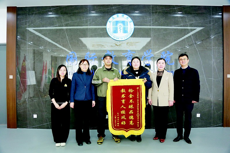 3月3日上午,记者陪同失主李女士来到了位于旅顺口区的大连医科大学。“拾金不昧品德高,教书育人校风好。”这是李女士定做的锦旗内容,她此行是专程向大连医科大学和伊拉克小伙穆之言表达感谢的。此前,记者获悉,穆之言是大连医科大学国际教育学院临床医学专业汉语班2022级留学生。于是,记者与穆之言的辅导员陈娟娟老师取得了联系,约定在国际教育学院会面。