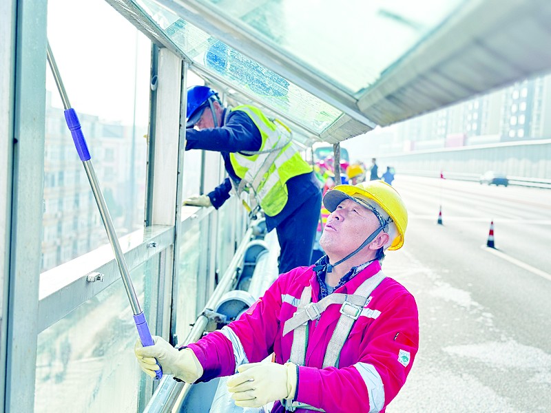 答:为了提高清洗效率,我们配置了充足的人员和机械力量,投入大型清洗设备7台,保洁人员40余人,分成5组流水作业,预计40天完成全部清洗工作,尽量减少对交通造成的堵塞,本轮集中清洗整治后,市市政中心将把桥隧清洗工作常态化,特别是对迎宾路线和重点区域,为提升市容市貌和将要迎来的旅游旺季持续助力。
