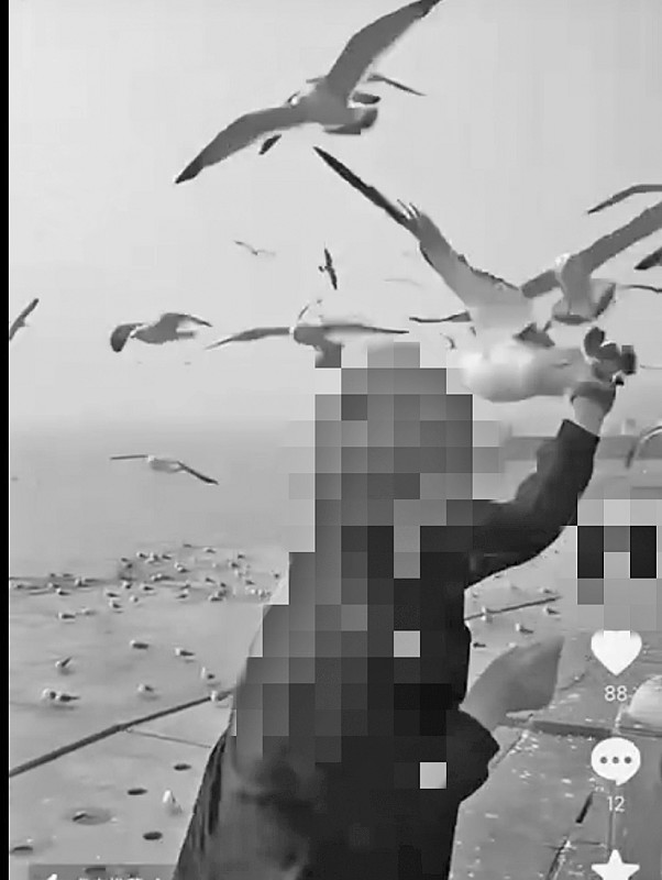 近日,大连市民江先生在社交媒体浏览到一则短视频后深感震惊与愤怒。视频中,一名身穿黑色外套、染着浅棕色短发的年轻男子跨过隔离链条,右手拿着海鸥食,站在临海的观景台上。大量海鸥迎面向他飞去时,男子突然伸出左手,抓住一只低飞海鸥的双腿。未等海鸥挣扎,他便将其甩向地面。海鸥落地后试图再次起飞,男子又伸手去抓。