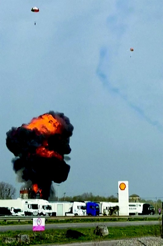 法国国防部长勒科尔尼25日通过社交媒体说,法国空军“法兰西巡逻兵”飞行表演队两架飞机当天下午在法国东部上马恩省进行飞行训练时相撞。 勒科尔尼表示,事发飞机系两架阿尔法喷气式飞机,救援行动已经启动。 法国媒体援引法国军方消息报道,飞机上的两名飞行员和一名乘客成功弹射逃生,被发现时“意识清醒”,目前3人正在接受救治。 报道说,“法兰西巡逻兵”飞行表演队原定于24日至28日在上马恩省一处空军基地进行训练。