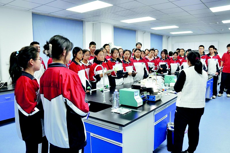 开发区八中以生涯规划教育为核心,构建“认知-探索-选择”三阶课程链。高一年级开设职业与大学专业认知课程18门,解析人工智能、法学等领域发展脉络;高二年级组织学生走进英特尔半导体、小熊飞机制造等世界五百强企业,开展职业体验活动,累计参与学生千余人次,撰写实践报告2300余篇;高三年级聚焦校际协同创新,与中国农业大学、大连民族大学等高校携手,邀请高校教授走进校园进行分享,引导学生在真实科研场景中锚定专业志向。