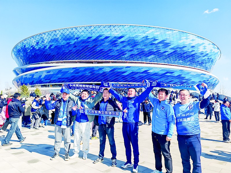 29日下午,大连英博足球队主场迎战长春亚泰,这也是梭鱼湾专业足球场本赛季的中超首秀。现场迎来大批球迷前来助威,球迷在场外呼喊“大连必胜”的口号,为家乡球队呐喊助威,梭鱼湾球场外气氛十分火爆。 半岛晨报、39度视频摄影记者张腾飞