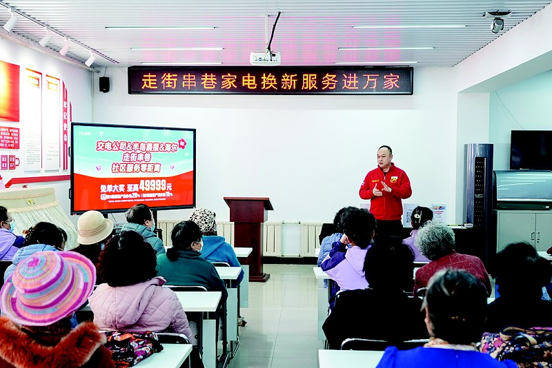 3月24日下午,在大商交电公司、海尔电器支持下,该活动走进沙河口区星海湾街道化物所社区,受到居民热烈欢迎。活动现场,大商交电公司部长王涛介绍了国家补贴政策,还宣讲了交电公司门店优惠政策;海尔电器工作人员详细介绍了各品类电器的优惠政策,还设置了智能家电课堂,讲解了家电使用和保养小技巧。