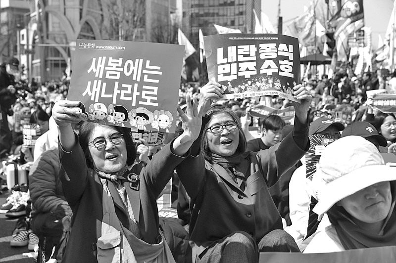 戒严风波以来,“混乱”是人们频频提及的词。4日,在宪法法院附近的集会现场,韩国民众卢妍秀告诉记者,风波以来,感觉国家失去了正常的社会秩序,学生们感到不安,商人们生意也不景气,经济萧条。“希望这种混乱的局面赶快结束,国家尽快恢复正常。”
