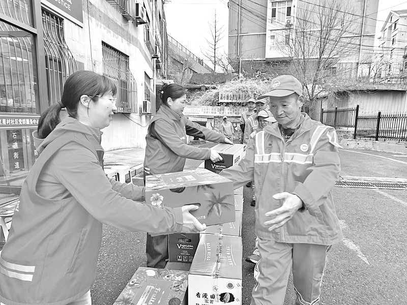 为了表达对环卫工人的敬意和感谢,4月9日,黑石礁街道红星村社区联合辖区爱心企业开展“蔬送温暖 果递真情”慰问一线环卫工人暖心行动,为辖区50余名环卫工人送去了总价值16000余元的慰问品。 (杨雪)