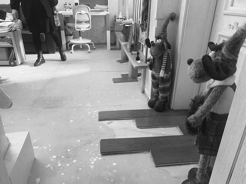 然而,3月18日,物业联系温女士否决了更换地板的方案。物业提出,可在保险赔付2475元的基础上,为她家充值物业费1525元,合计赔偿4000元。彼时的温女士在一次次的协商过程中,产生了诸多不满。她决定自行更换地板,并向物业进行原价索赔。“我联系了实木地板店,找到了同等品质的地板,修缮花费合计9845元。”温女士说。