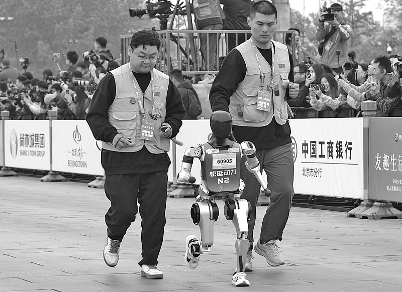 4月19日7时30分,北京亦庄半程马拉松暨人形机器人半程马拉松在南海子公园南门开跑。这是全球首个人形机器人半程马拉松,20支人形机器人赛队与跑步爱好者一起冲出起跑线,在21.0975公里长的赛道上挑战极限。最终,“天工”以2小时40分42秒的成绩冲线,夺得全球首个人形机器人半程马拉松赛事桂冠。 “天工”成绩符合预期 发令枪一响,1.8米高的人形机器人“天工”第一个冲了出去,两条结实的大长腿充满机械感。去年的北京亦庄半程马拉松上,它曾作为“配速员”与选手们一起冲刺终点。“近一年过去了,我们成长了!”该赛队发言人魏嘉星说,“天工”的奔跑速度在去年是6公里/小时,现在最高能达到12公里/小时。 10时许,“天工”冲过终点线,是第一个跑完全程的赛队,以2小时40分42秒的成绩夺得了全球首个人形机器人半程马拉松的冠军。“我觉得它表现不错,符合我们的预期。”研发“天工”的北京人形机器人创新中心总经理熊友军说。 机器人奔跑时,双脚交替重踏地面,持续产生的冲击给机器人带来极大挑战。“天工”夺冠的“神秘武器”是什么?此次天工队参赛的选手是天工Ultra,身高1.8米,体重约55公斤。此前,北京人形机器人创新中心专门对机器人进行了轻量化设计,并采用关节导热、风冷散热等技术,使关节能支撑更长时间奔跑。 记者获悉,此次“天工”大约保持每小时八九公里的配速,中途更换3次电池,与赛前团队预估保持一致。另一个亮点是,比赛过程中,“天工”并没有像很多赛队使用遥控操作的方式,而是通过无线领航技术完成跟随导航和长程路径规划,自主实时调整奔跑方向和速度。 机器人赛前也需热身 “跟人跑步一样,雨后地面会比较滑。”天工队发言人魏嘉星向记者解释,奔跑过程中,机器人也会稍微降低一些速度,来保证整个运动过程的稳定性。 筹备阶段,赛队也考虑到了机器人跑步过程中要面临的各种情况。此前,北京人形机器人创新中心对“天工”的本体和一体化关节的稳定性和耐热性做了较好的提升;在机器人的平衡性、步态规划、上下肢协调方面,也做了运动控制算法的升级,能够让它跑得更稳定、更灵活,适用于复杂的户外环境。 机器人如何热身?魏嘉星说,比赛正式开始前,该赛队专门对“天工”进行了一些调试和检查。比如让它先提前走走、跑跑,看看机器人的整体情况,确保它能在比赛过程中发挥出最好状态。 无论是刮风还是下雨,都是人形机器人跑半马要解决的难题,也正是这次比赛的魅力所在。组委会介绍,人形机器人从实验室“跑”到真实的道路环境中,在环境适应、地面应对以及通信等方面都带来了前所未有的挑战,这在全球范围内也是首次。 赛道模式精心打造 本次比赛采用人机共跑赛道的模式,人类选手赛道与机器人赛道共用,但分属不同赛区,这种模式对机器人而言,在很多方面都带来了前所未有的挑战。 赛场上,人类跑者与“钢铁跑者”从南海子公园一期南门出发,途经泡桐大道、文博大桥、通明湖公园等网红打卡地,最终到达通明湖信息城。“我们要打造一条最美的马拉松路线。”北京经济技术开发区管委会副主任李全说,机器人和选手们在前行过程中,感受到“燕京十景”之一的南囿秋风在春季的别样风光,也能在文昌大道一睹各大企业的风采,穿过最具梦幻的泡桐大道,充分领略“一城花海,两侧紫韵”的风景。这一匠心独运的设计,完美诠释了科技创新与产业升级的深度融合,更实现了人文精神与自然之美的和谐共生。 走进百姓家尚需时日 夺冠的机器人何时能够走进百姓家?“人形机器人还面临着一些有待解决的问题,比如说它的能源利用效率,机器人跑步过程中还得换几次电池,因此电池续航能力需要增强。”熊友军说,下一步“天工”将迭代运动控制的能力和上半身操作能力,真正让机器人能够走入生活,帮助人类去解决日常生活中的一些问题。 据北京晚报 ■记者手记 “人机共跑”,拉近与未来的距离 在春日跑马热潮再度来袭的4月,一场“人机共跑”的半程马拉松为路跑赛事添了“一把火”。这是全球首次“人机共跑”半程马拉松——人形机器人与人同步报名、同时起跑,共跑21.0975公里,20支人形机器人参赛队无疑是最大看点。 好奇、期待、疑惑交织在一起……对于现场所有选手、记者、志愿者和工作人员而言,这都是一次全新的体验。自从一个多月前人形机器人参加半马赛事的消息发布后,与“人机共跑”相关的话题就层出不穷——机器人为何要设计成人形?人形机器人又为什么要跑马拉松?真的有机器人能跑完半马吗? 在科研人员看来,马拉松不是秀场,而是高规格的试验场。“旋风小子队”领队崔文昊表示,此前业界很少像半马这样长距离、长时间地测试机器人的极限性能,为了让机器人在赛场上跑得更快,各支队伍加紧攻破结构稳定性等方面的难关。他相信,这次“人机共跑”过后,整个行业的技术水平都会有所提升。 正如同人类跑马需要坚持不懈地科学锻炼,人形机器人也需要在科研团队的帮助下,不断完善自身性能。这场备受瞩目的人形机器人半马,能够增进企业之间的交流互鉴,推动技术升级以及行业标准的建立,让更多人看到、了解、接纳人形机器人。 人形机器人的核心价值在于融入社会生活,这场半马生动描绘了智能生活的美好图景,将“人机共荣”的目标又向前推进一