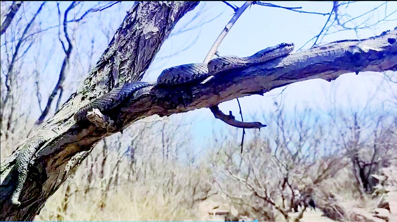 此时的蛇岛蝮已经结束冬眠,逐渐恢复活动。记者拿着木棍沿着栈道前行,不时看到两边一盘盘的蛇岛蝮聚集在一起,初醒时活动较缓慢,多集中在阳光充足的岩石、草丛附近晒太阳,也有个别的蛇爬到了树枝上。