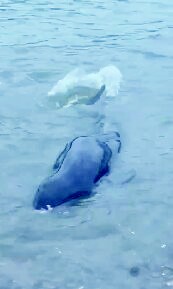 张先生说,当时海滩上还有不少业主。两名男性老人当即返回家中,过了五六分钟,“老哥俩”穿着高腰胶鞋,手里拿着铁锹再次出现在沙滩上。“老哥俩”一边往江豚身上浇海水,一边用铁锹一点点推动江豚身体,大概推动了1米多远的距离,海水刚巧能够没过江豚的头部,江豚瞬间恢复生机,摆动尾鳍,转头向深海里游去……