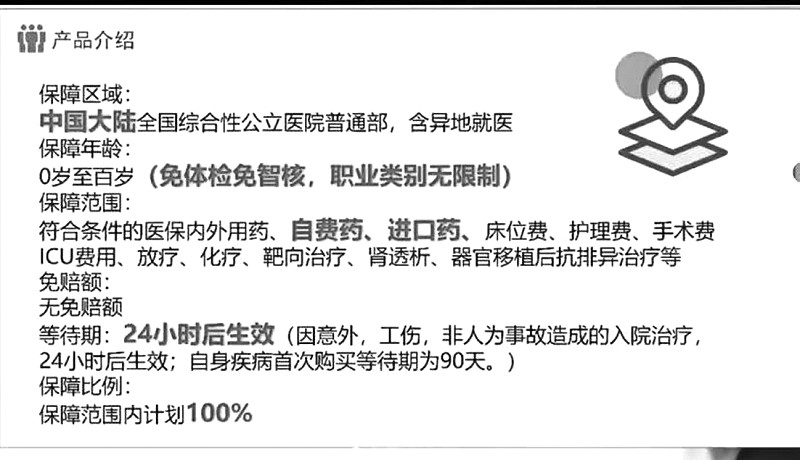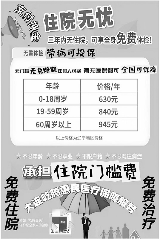一年几百元,不限年龄、不限职业、不限户籍、不限既往症,甚至带病体都能参保;自费药、进口药、床位费、护理费、手术费、ICU费用、放疗化疗、靶向治疗、肾透析、器官移植后抗排异治疗等费用统统都报销,可信吗?近一段时间,大连一家公司开始向外界出售上述医疗保障服务产品,而且对外宣称公司得到国务院特殊批准,以及国家医保局授权,还向大连市政府报备。今年2月,大连市医疗保障局发布声明:从未与任何生态科技有限公司开展健康保险业务合作,请广大群众提高警惕,谨防上当受骗。目前,我市警方已对这家公司进行立案调查。 业务员 发现公司有问题要求退款遭拒 家住中山区东港的李女士是一名自由职业者,此前她在参加一次活动时结识了一名女子,两人相互添加了微信一直保持着联系。今年3月,这名女子得知李女士没有固定工作,便邀请李女士到他们公司担任业务员。 李女士了解到,这名女子是大连屹腾惠民健康生态科技有限公司(下称屹腾惠民)的业务员,对方表示,屹腾惠民推出的医疗保障服务产品具有诸多优势:每年仅需几百元保费,覆盖0至100岁人群,不限制既往病史,即使是带病体也可参保。该产品承诺全额报销医保范围外的住院费用,提供住院押金垫付服务,实现“0元住院,全额报销”。 起初李女士并未动心,但在对方多次劝说下,她于4月19日花费840元购买了一份产品。购买后,李女士被拉入公司群聊。随着深入了解,她发现公司存在诸多可疑之处:入职条件从最初要求“自购一份并外售五份”逐渐降低,最后甚至在她未完成销售任务的情况下,仍为她生成了专属推广二维码。 心生疑虑的李女士向相关部门核实后大吃一惊。“我和好几个部门核实,发现这家公司并没有在有关部门备案,也从未与有关部门存在合作。”发现问题后,李女士要求退款,却遭到公司拒绝。李女士向公安机关报案,“公安机关回复说,他们已经对这家公司进行立案调查。” 公司宣传 不限年龄、带病体也可参保 根据屹腾惠民的宣传材料和培训资料,记者了解到,屹腾惠民自称是国家推行全民免费医疗的试点性企业,并获得了国务院特殊批准、国家医保局授权以及向大连市政府报备。该公司推出的产品设置了三个年龄段的价格档位:0-18周岁每年630元,19-59周岁每年840元,60周岁以上每年945元。 记者了解到,屹腾惠民宣称其推出的医疗保障服务产品具有多项突破性优势:不设免赔额和封顶额,对住院次数无限制;参保年龄覆盖0至100岁全年龄段,且不设职业限制,即使是高危行业从业者也可参保;更引人注目的是,该产品不限既往病史,有无病史都可以参保,带病体也可以参保。其保障范围涵盖公立医院或者部分专科医院普通部普通病房住院的医疗费用,包括异地就医,并可报销符合条件的医保内外用药,自费药、进口药、床位费、护理费、手术费、ICU费用,以及放疗化疗、靶向治疗、肾透析、器官移植后抗排异治疗等。 尤为突出的是,屹腾惠民宣称其产品最大亮点在于可提前一次性支付住院押金,且金额无上下限。 医保部门 从未与任何该类公司开展健康保险业务合作 记者调查发现,屹腾惠民推出的高性价比产品在市场上引起了强烈反响,吸引了大量消费者的关注。那么屹腾惠民推出的产品和医保部门有合作吗?今年2月22日,大连市医疗保障局发布严正声明,全文如下:近期有群众向大连市医疗保障局来电反映:某生态科技有限公司在出售健康理赔产品时,声称与医保部门存在合作关系。在此,大连市医疗保障局严正声明:大连市医疗保障局及下属部门和单位,从未与任何生态科技有限公司开展健康保险业务合作。请广大群众提高警惕,谨防上当受骗。 ■最新进展 警方已对“屹腾惠民”立案调查 5月14日下午,记者多次尝试联系屹腾惠民,办公电话要么无人接听,要么在记者表明身份后遭到直接挂断。记者随后尝试联系该公司相关负责人,但其电话始终处于占线状态。据悉,目前我市公安机关已对屹腾惠民进行立案调查。 ■相关阅读 湖南已发布关于警惕非法经营保险业务的风险提示 今年3月20日,湖南省保险行业协会发布《关于警惕非法经营保险业务的风险提示》称:近期接到群众举报,某健康生态科技有限公司在安化等地推销“惠民保险保障类”产品。经核实,该公司不具备保险业务经营资质,涉嫌违规经营保险业务。该行为违反《中华人民共和国保险法》,破坏了益阳保险市场正常秩序。 本报特别报道组