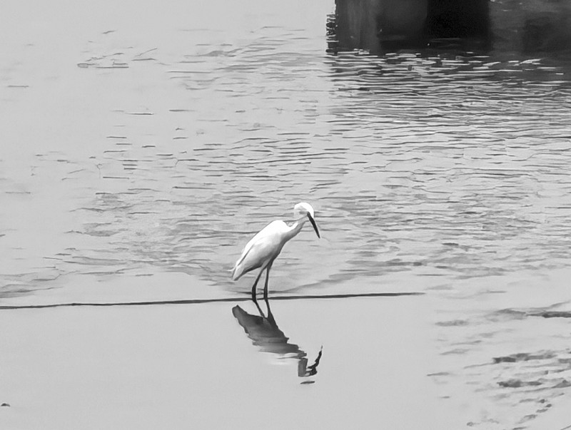 当时河面有薄雾,视线不太清晰,孙宗伟用手机拉近镜头,连续拍摄多张照片。他认为,这只姿态优雅的白色大鸟应是白鹭。