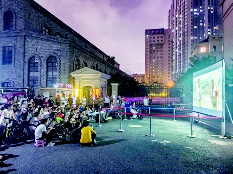 近日,日新街道兴业社区携手百安物业、大商集团麦凯乐大商电器、海尔家电在悦泰福里小区中心广场开展“银幕忆峥嵘,光影照初心”活动。 (马薇)