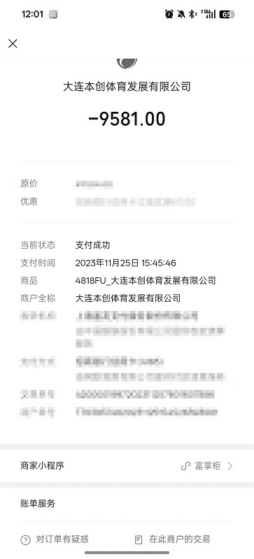 根据消费者提供的会员协议与付款记录,记者注意到,其协议上所盖合同专用章显示的“大连本创体育发展有限公司”,与收款商户名称完全一致。为厘清该机构背景,记者通过企业信息平台查询获悉,该公司成立于2014年3月11日,注册地址位于大连市西岗区长春路171号,属小微企业,经营范围为体育赛事策划、体育经纪、体育健康服务等项目。