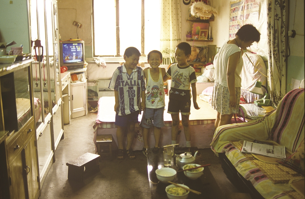 这样的筒子楼,大多为三至四层的砖混结构楼房,南通的国棉一厂、国棉二厂、航运公司都曾建过这样的工房。筒子楼给人的整体感觉就是光线昏暗、杂乱无章,但在那个年代,一个职工能分到一个房间,外加四个人家合用的一个厨房,已经不错了。