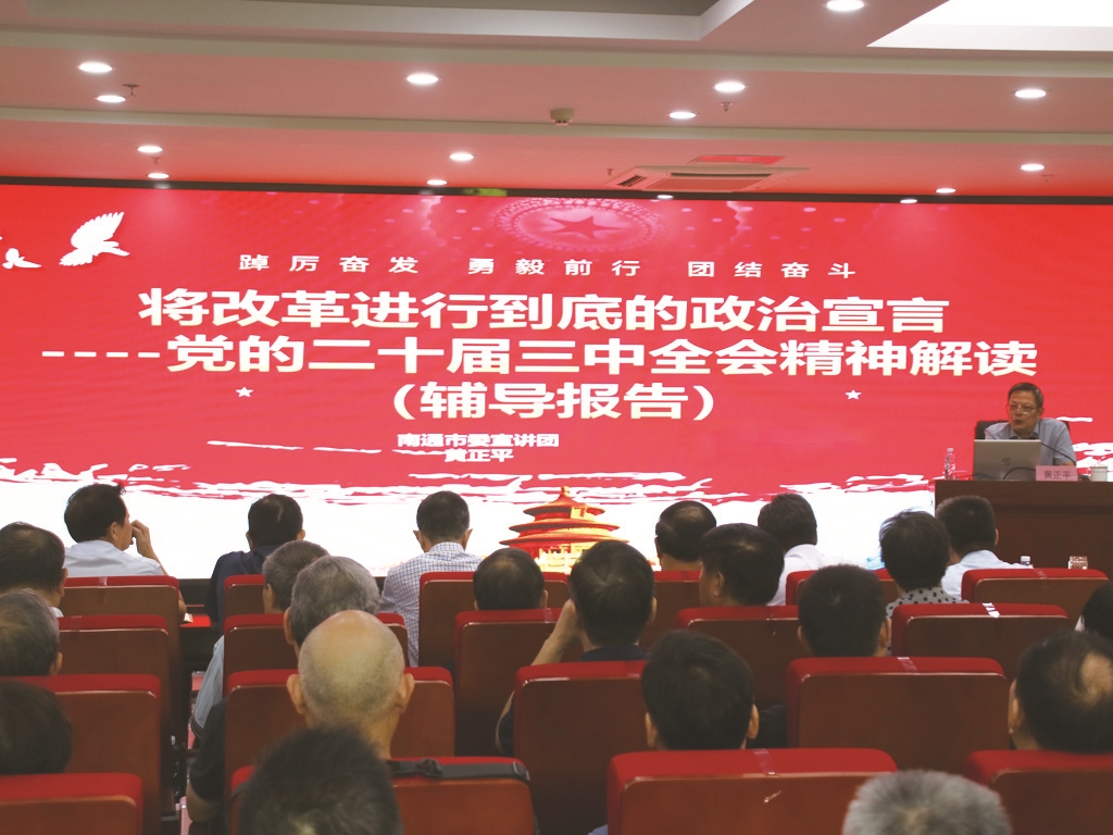 “报告系统全面、深入浅出、精彩生动,为我们更好地学习贯彻党的二十届三中全会精神提供了重要的思想路径、理论路径和实践路径。”与会的老同志纷纷表示,将深入学习贯彻全会精神,积极融入中国式现代化南通新实践,为我市进一步全面深化改革、打造全省高质量发展重要增长极贡献“银发”力量。