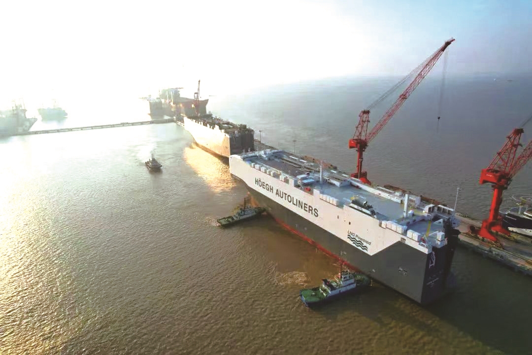 全球最大环保型汽车滚装船9100车双燃料汽车滚装船“礼诺极光”号