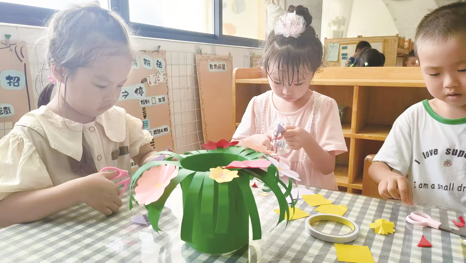 日前,如皋市外国语学校附属幼儿园开展“谢谢你,我亲爱的老师”活动,孩子们通过创意绘画、手工制作等表达对老师的祝福。马学青 薛霞摄