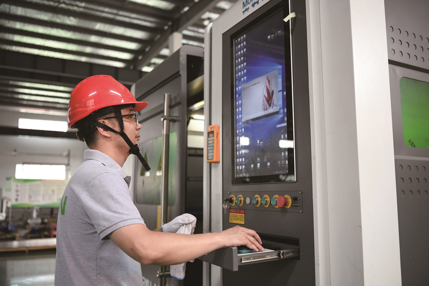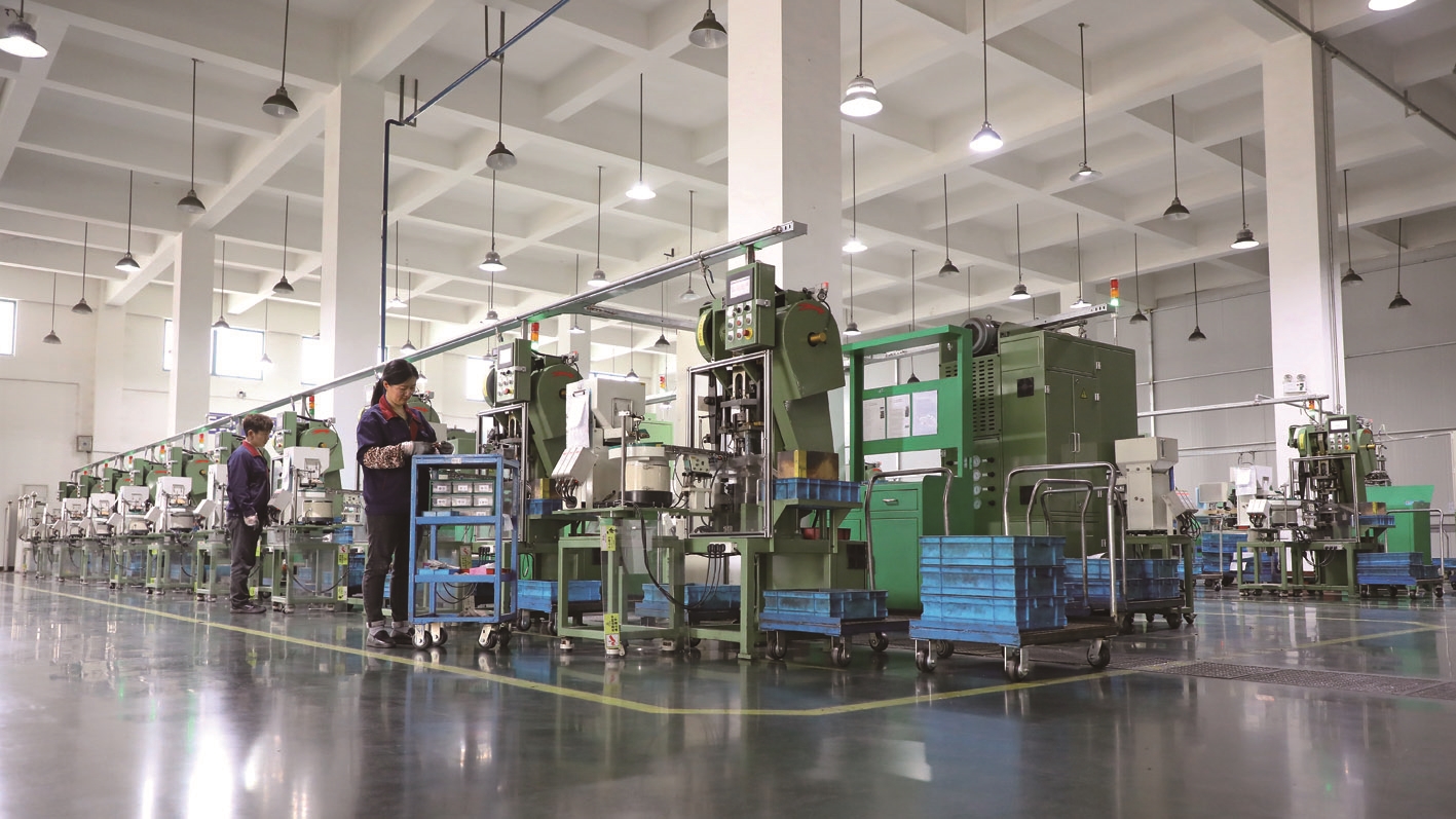 南通光明钼制品有限公司自主研发全自动化生产线设备,将线状钼杆的误差控制在头发丝的八分之一内。 赵勇进摄