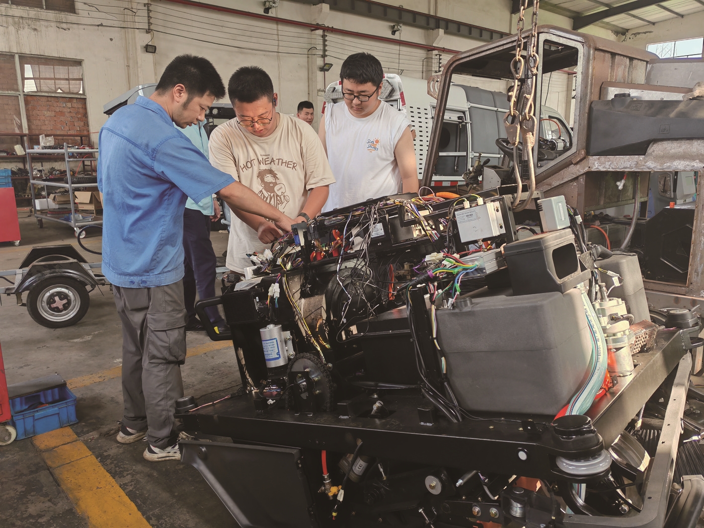 南通明诺电动科技股份有限公司与浙江有鹿机器人科技有限公司联合研发的AI130机器人扫地车效率提升10倍。 赵勇进摄