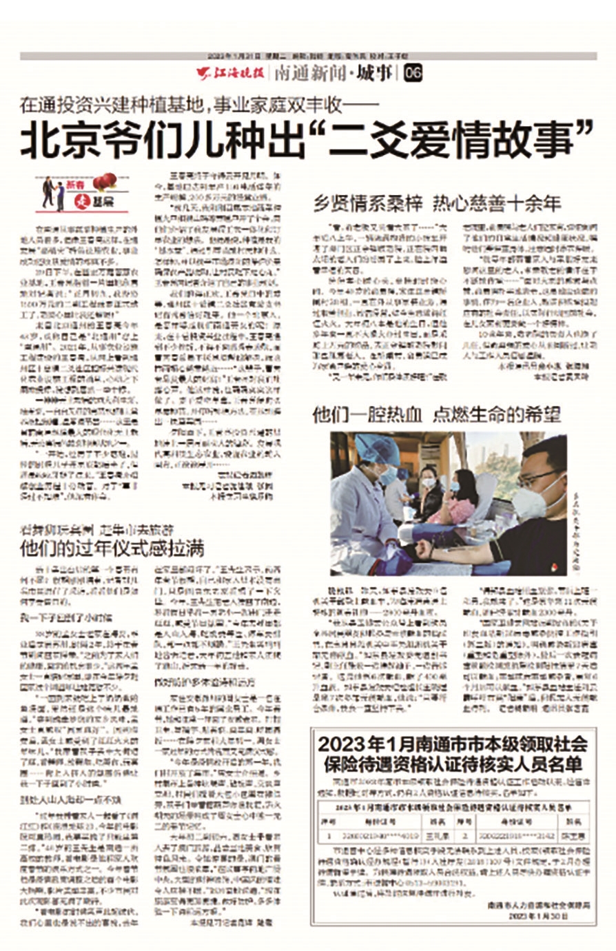“结缘南通日报的那段时间,恰好是我事业的瓶颈期。”王春亮回忆说,“《北京爷们儿种出‘二爻爱情故事’》这一报道刊发后,不少人前来和我洽谈合作事宜。”