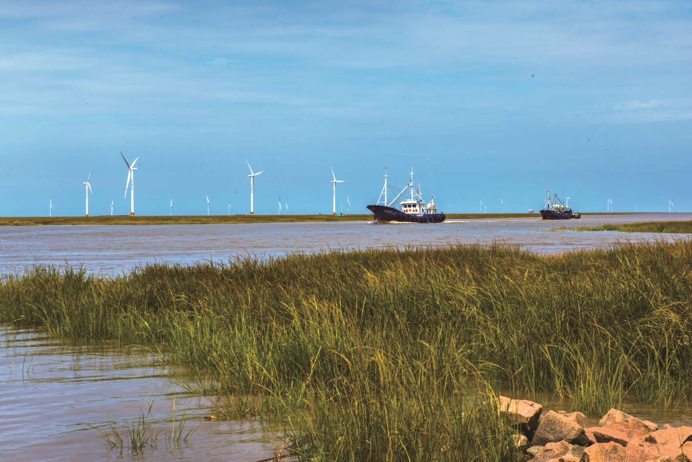 烟波浩渺,水光接天;浮光跃金,静影沉璧。海上风车,蔚为壮观;沙鸥翔集,如梦如幻。