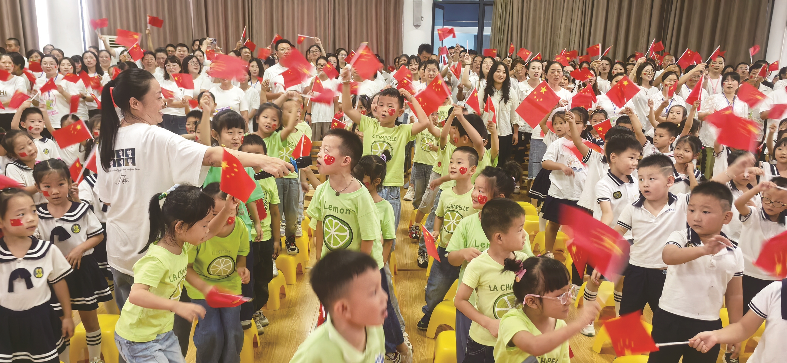近日,如皋市外国语学校附属幼儿园开展“欢度国庆,红歌大联唱”亲子系列活动。孩子和家长们用嘹亮的歌声,唱响一首首熟悉的旋律,让爱党爱国的情怀在歌声里绽放。 薛霞 马学青摄