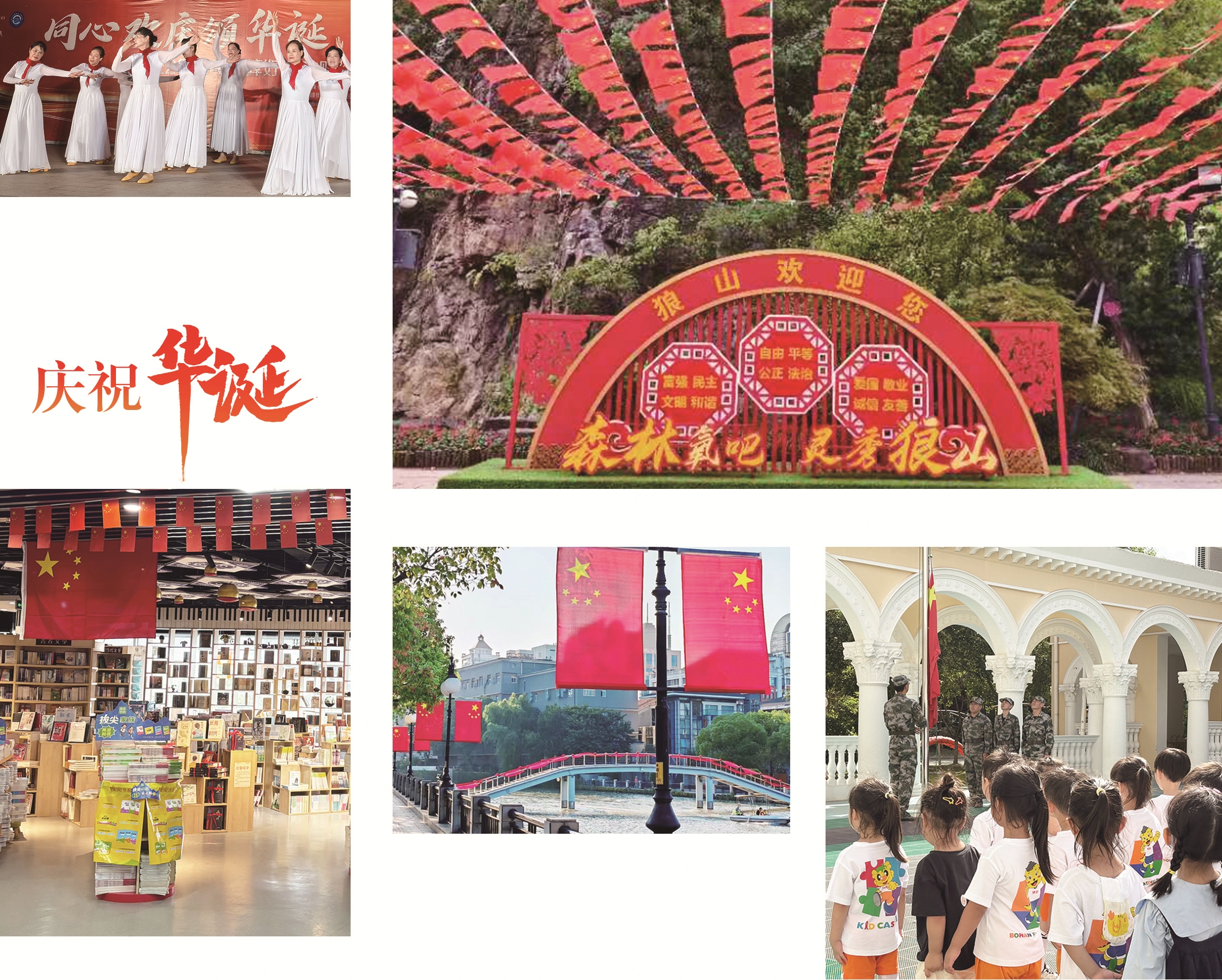 ▲南通弘文书店悬挂国旗喜迎国庆节。 蔡建金摄