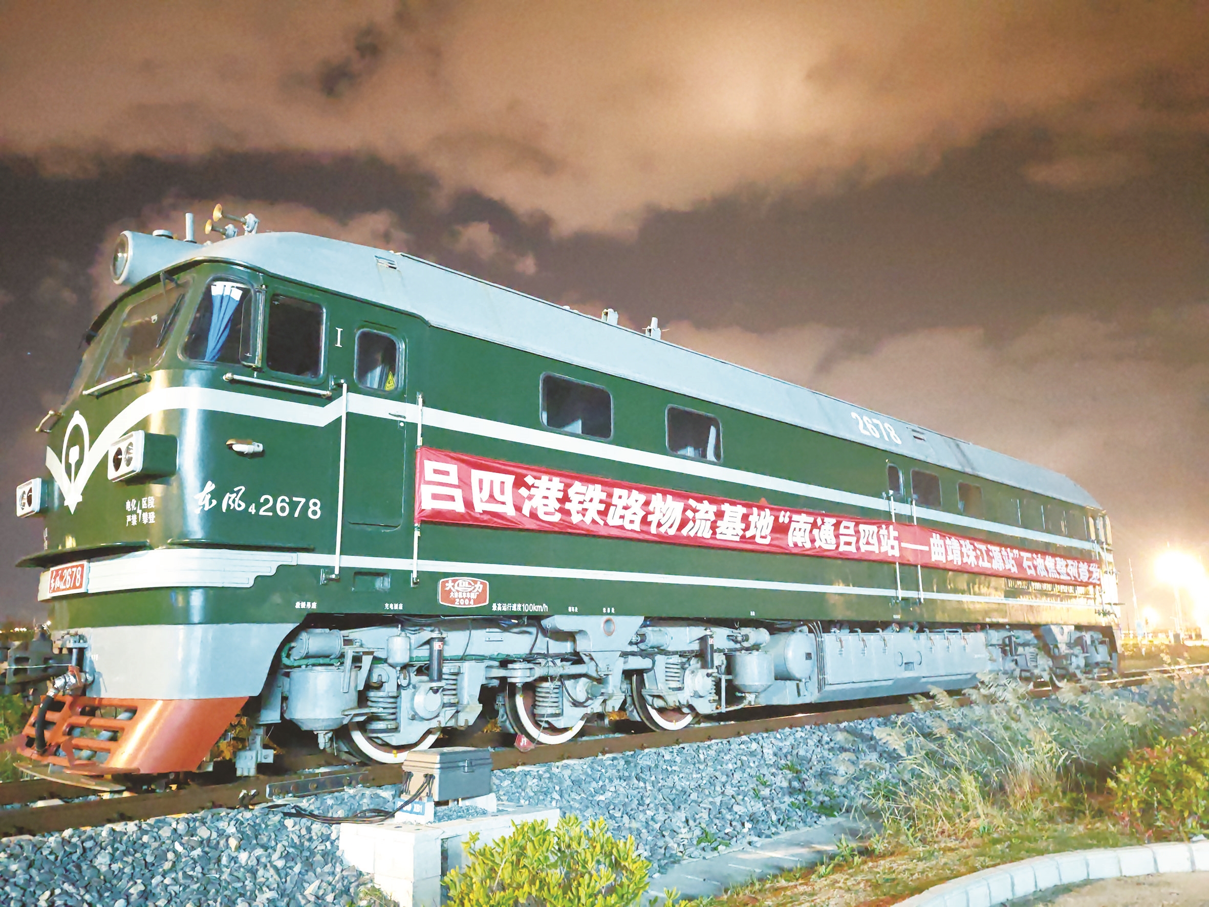 本报讯 (记者彭军君)23日22时08分,满载着50个集装箱约1500吨石油焦的列车从吕四港站缓缓驶出,发往云南曲靖珠江源站(下图)。首列成功发送标志着沿海集团吕四港物流基地打通了至云南地区的货运通道,为南通沿海地区企业连接西南区域提供更加便捷的通道。