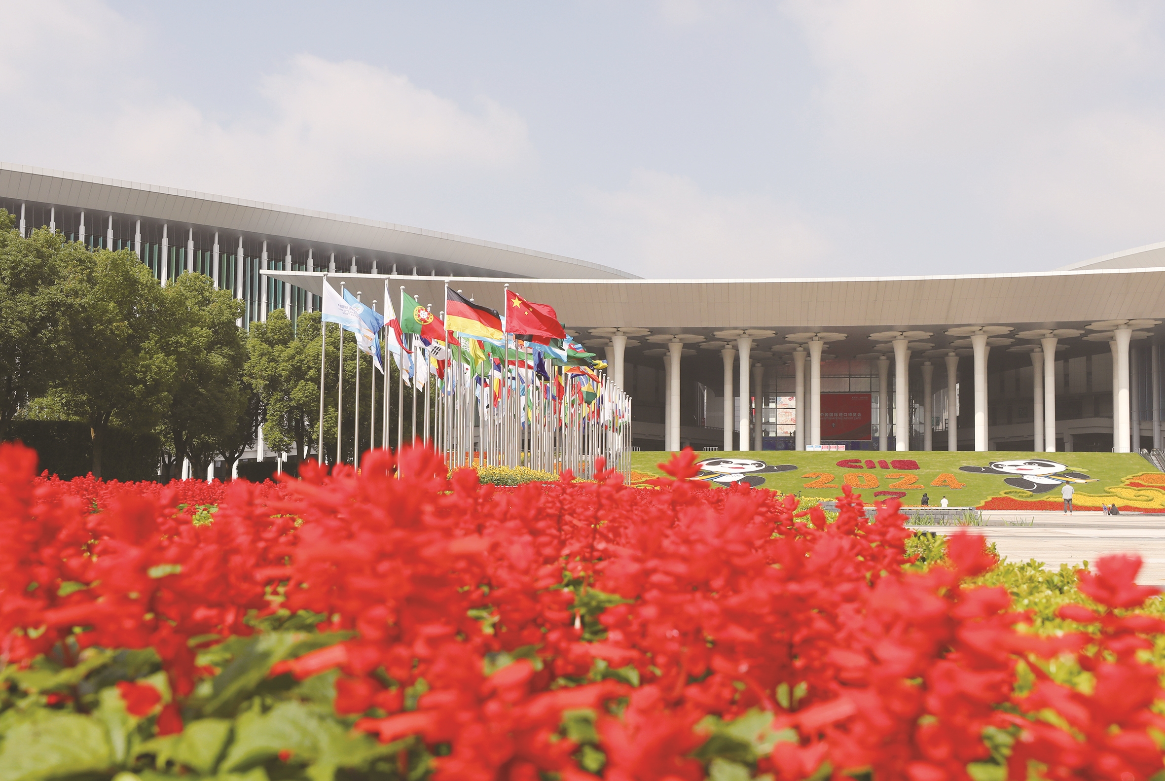 这是装饰一新的国家会展中心(上海)南广场。第七届中国国际进口博览会将于11月5日至10日在上海举行。目前,场馆内外装饰布展工作已进入收尾阶段,静待盛会开幕。 新华社照片