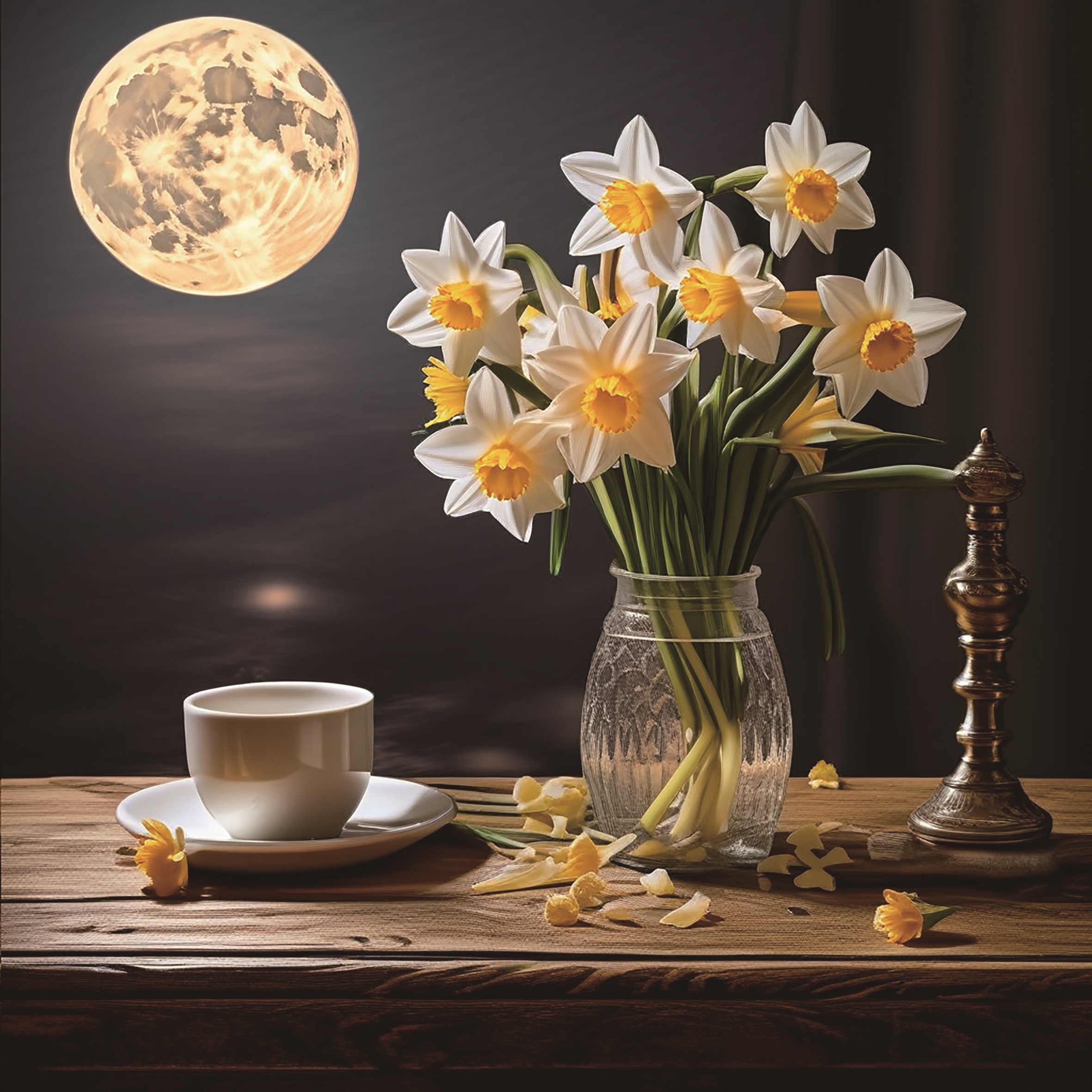 父亲低声自语,他记得水仙已枯萎丢弃。母亲也肯定地说,她记得扔了。父亲疑惑地望向我,问是否是我所为。