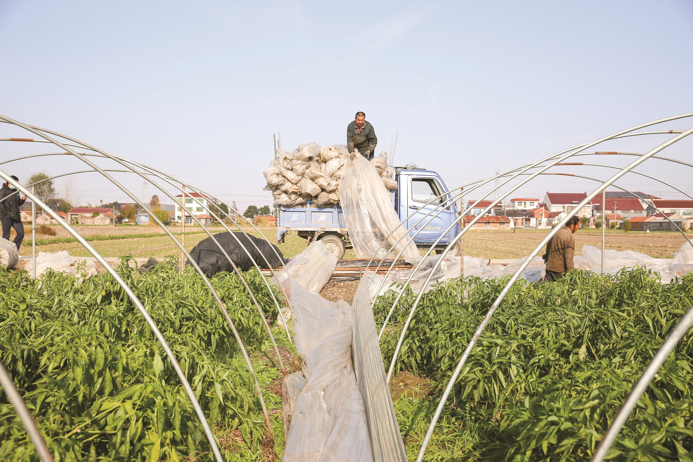 4日,如皋市城北街道废旧农膜回收点工人正在田间进行废旧农膜回收。近年来,当地积极推动废旧农膜回收再利用工作,采取“现金收购”模式,解决农业废弃物的同时,又让农民得到实惠。据了解,该废旧农膜回收点今年废旧农膜回收利用率达90%以上,助力加快推进农业绿色发展。 CFP供图
