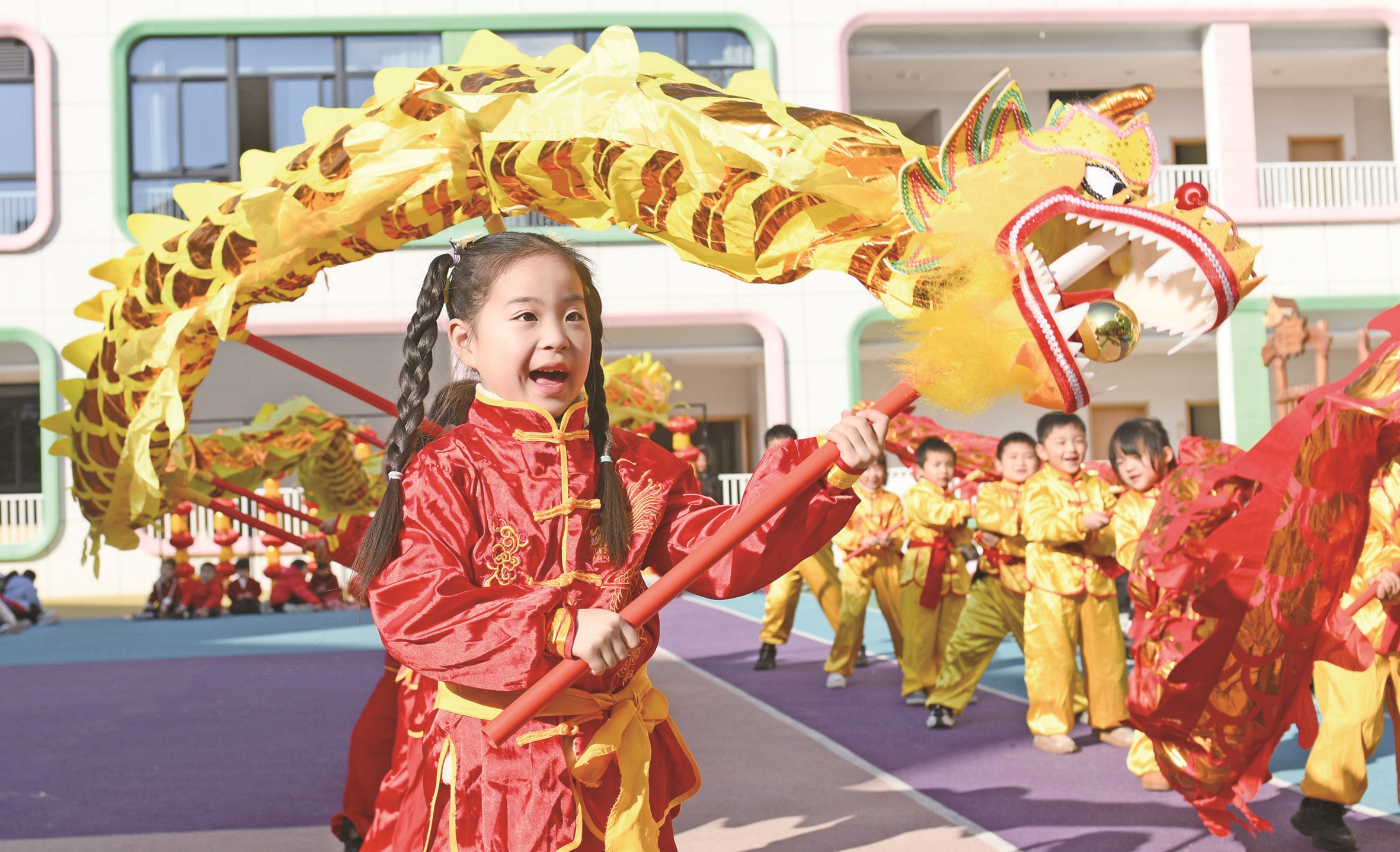 浙江省台州市仙居县迎晖幼儿园的小朋友在表演舞龙(资料图)。12月4日,正在巴拉圭亚松森召开的联合国教科文组织保护非物质文化遗产政府间委员会第19届常会通过评审,决定将“春节——中国人庆祝传统新年的社会实践”列入人类非物质文化遗产代表作名录。 新华社照片