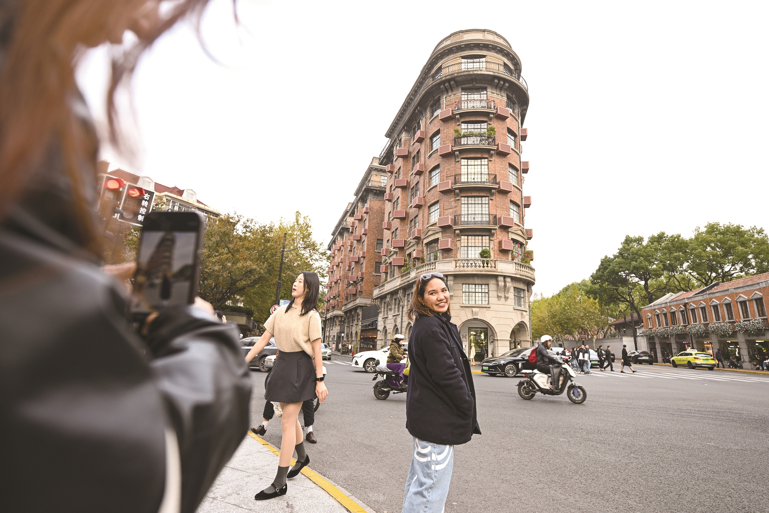 3日,来自泰国的游客在上海武康大楼前打卡拍照。随着赴华免签国家持续扩容,“中国游”越来越便捷,众多国际游客纷至沓来。2024年第三季度,中国各口岸入境外国人818.6万人次,同比上升48.8%,其中,通过免签入境488.5万人次,同比上升78.6%。 新华社照片