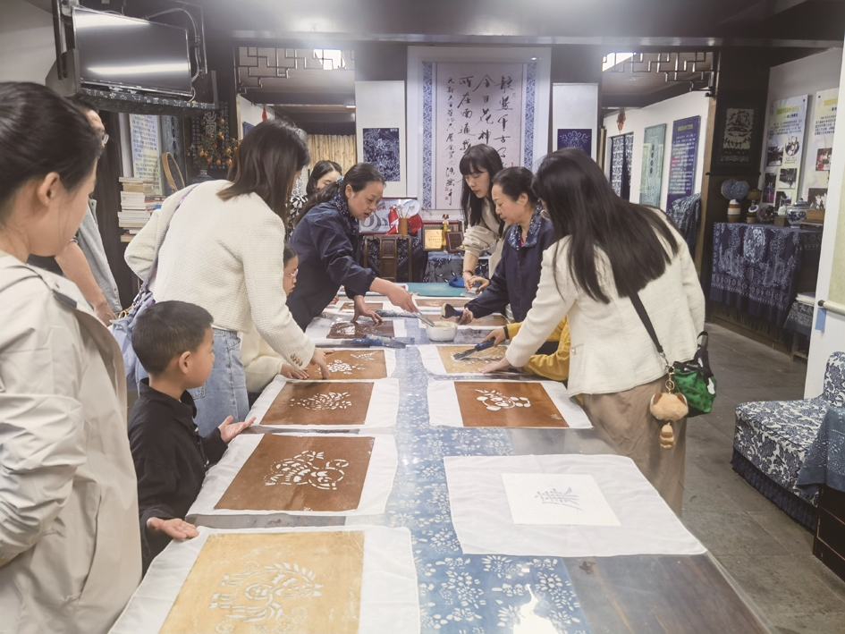 蓝印花布的制作包含五道工序:雕花刻板,有规有矩;刮浆防染,无隙可乘;蓝靛浸染,一清二白;刮白去浊,取精去粕;手工晾晒,防腐固本,暗喻了中华优秀传统文化中的廉洁基因。在现场工作人员的指导下,大家体验了蓝印花布印染技艺,深深感受着“清正廉洁”的魅力,切实引导员工和家属守牢廉洁自律底线、筑牢拒腐防变家庭防线,营造注重家庭家教家风的浓厚氛围,以好家风促党风、带行风、正作风。