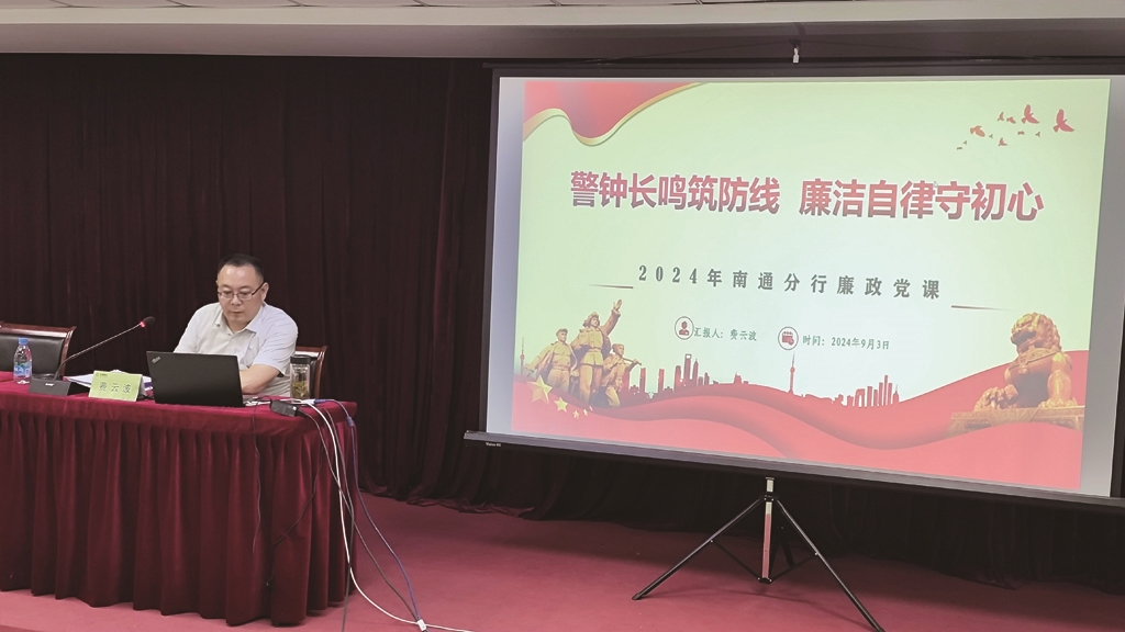 为进一步强化党员思想教育,筑牢廉洁底线,苏州银行南通分行召开党风廉政教育会议,会议以《警钟长鸣筑防线,廉洁自律守初心》为题,围绕二十届中央纪委三次全会精神、苏州银行南通分行员工行为禁令等开展廉政教育党课,并观看警示教育片。