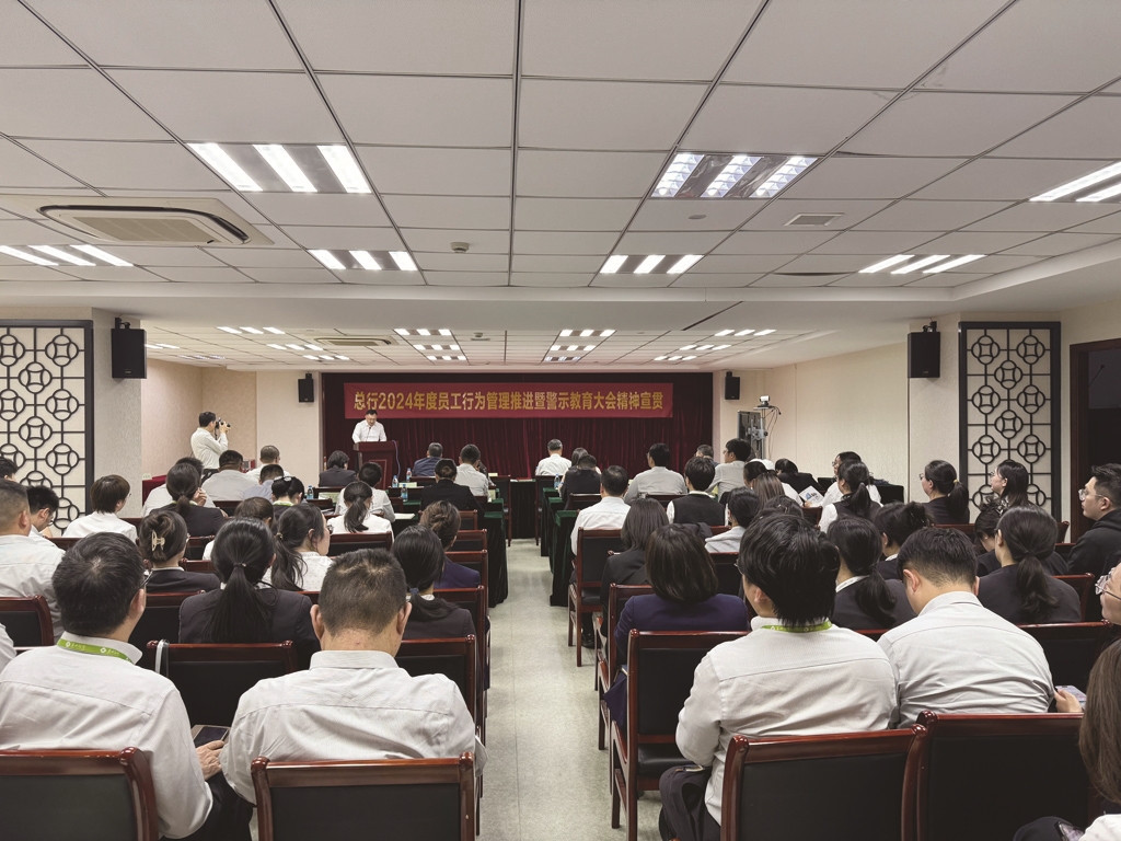 苏州银行南通分行召开总行2024年度员工行为管理推进暨警示教育大会精神宣贯会议,会议强调,分行全员要以《中国共产党纪律处分条例》作为规范党组织和党员行为的基础性法规,全面从严治党、依规治党,进一步严明政治纪律和政治规矩。以“自律、他律、互律”为工作底稿,以“稳健、精进、匠心、创新”为工作引领,对员工行为管理重点抓、常态抓,形成风清气正的工作氛围。