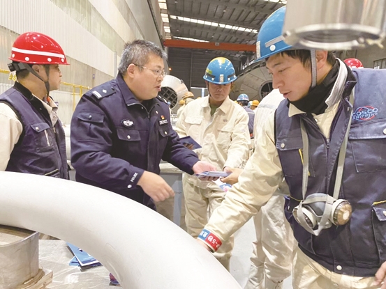 16日,民警讲解预防电信网络诈骗的技巧。当天,崇川公安分局陈桥派出所民警来到南通远洋船舶配套有限公司,开展反诈宣传和安全生产培训。黄肖宇摄