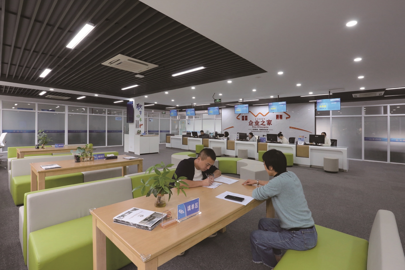 “现在设立企业在平潮就能办,还有人免费帮办代办,不但省去了来往金沙的奔波时间,还节省了因为不了解流程耽误的时间。”平潮镇便民服务中心负责人金凌云介绍:中心引入了农商·苏服办政银合作模式,设置了“企业开办一站式”服务专窗,可为周边企业群众提供内资企业市场主体登记、公章刻制、银行预约开户等全方位一体化服务。