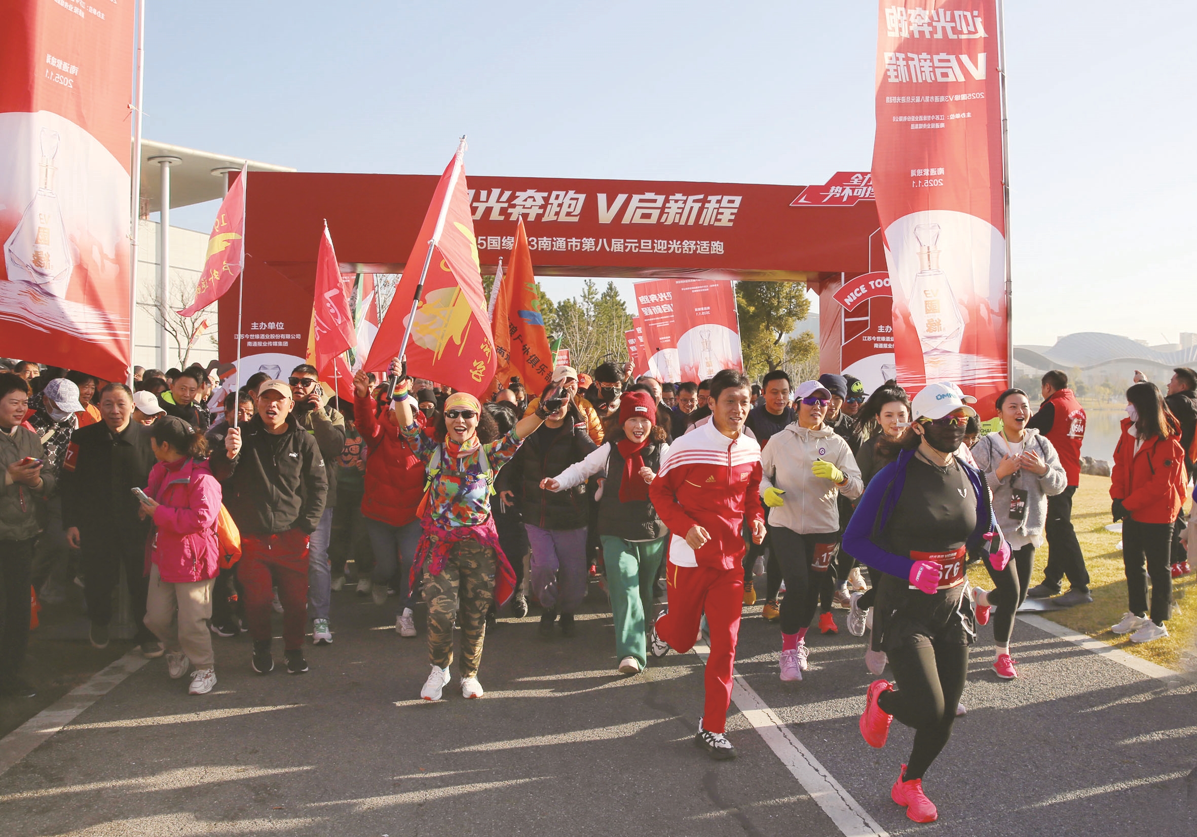 昨日8时30分,随着发令枪响,在国际马拉松冠军张庆乐带领下,全市2000余名徒步健儿,沿着紫琅湖畔热情奔跑、欢庆新年。2025国缘V3南通市第八届元旦迎光舒适跑活动,由南通报业传媒集团牵手江苏今世缘酒业股份有限公司共同举办。 记者 尤炼摄