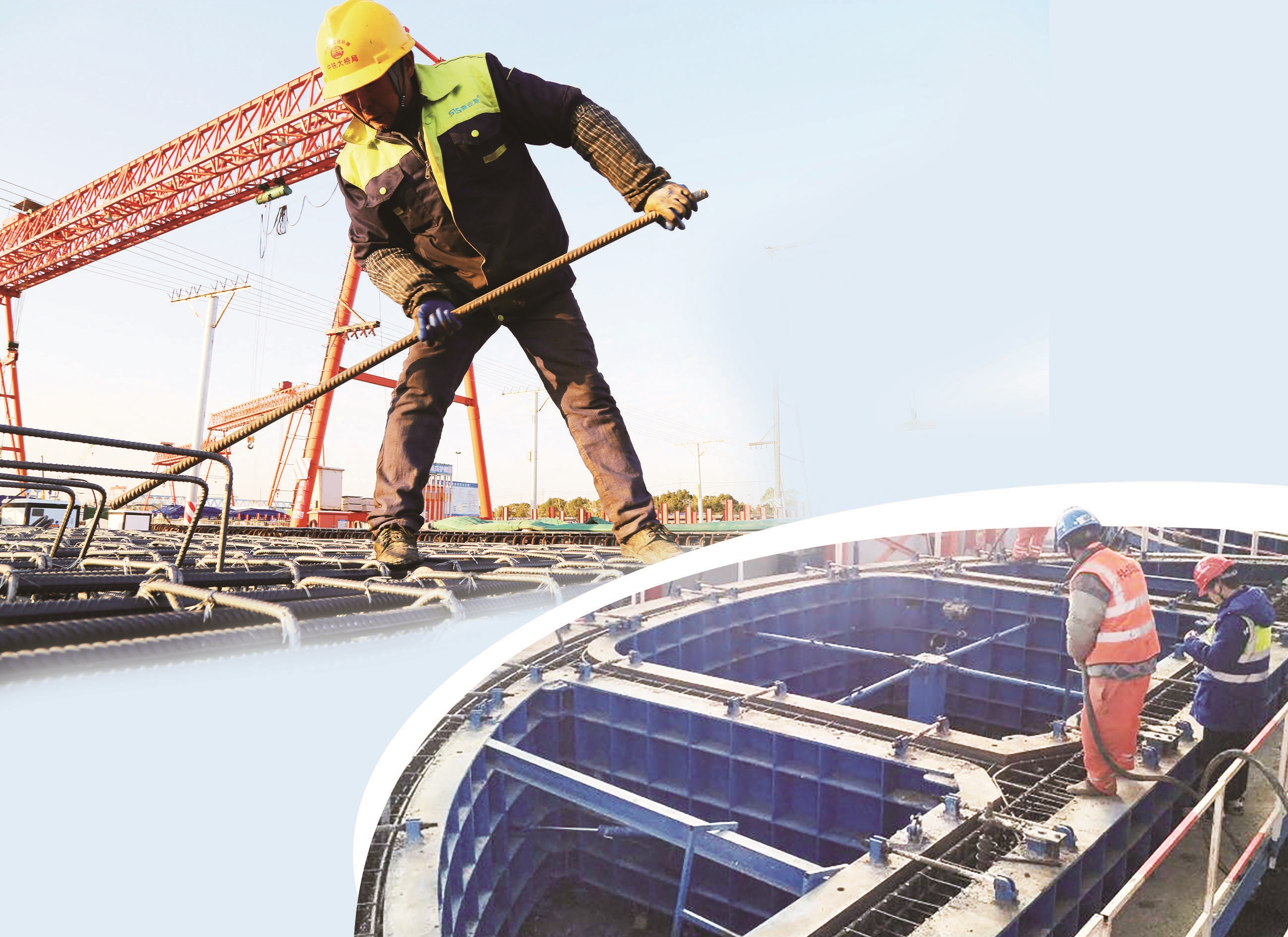 ▲新年第一天,中铁大桥局沪渝蓉高铁崇启公铁长江大桥工地施工现场一片繁忙。